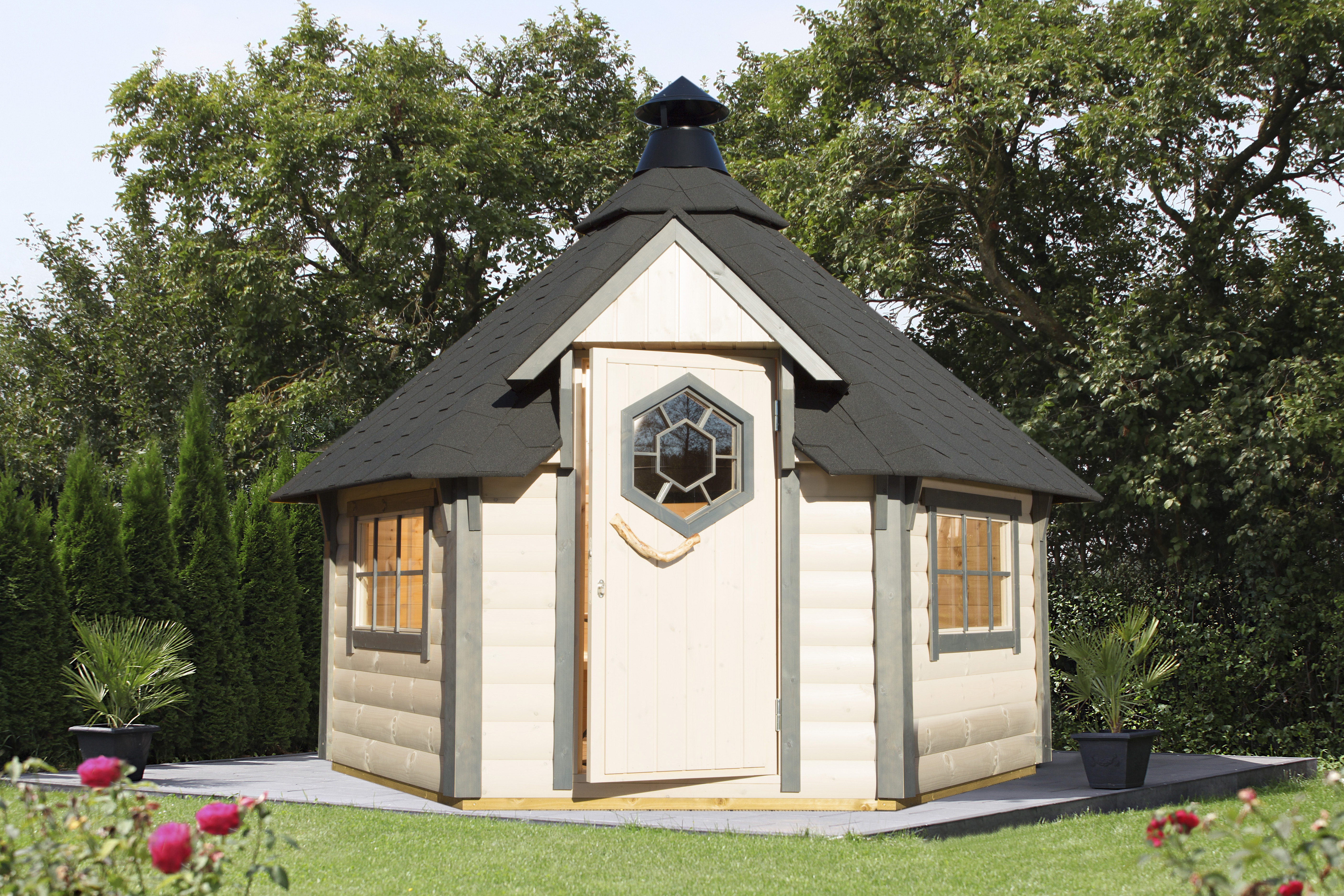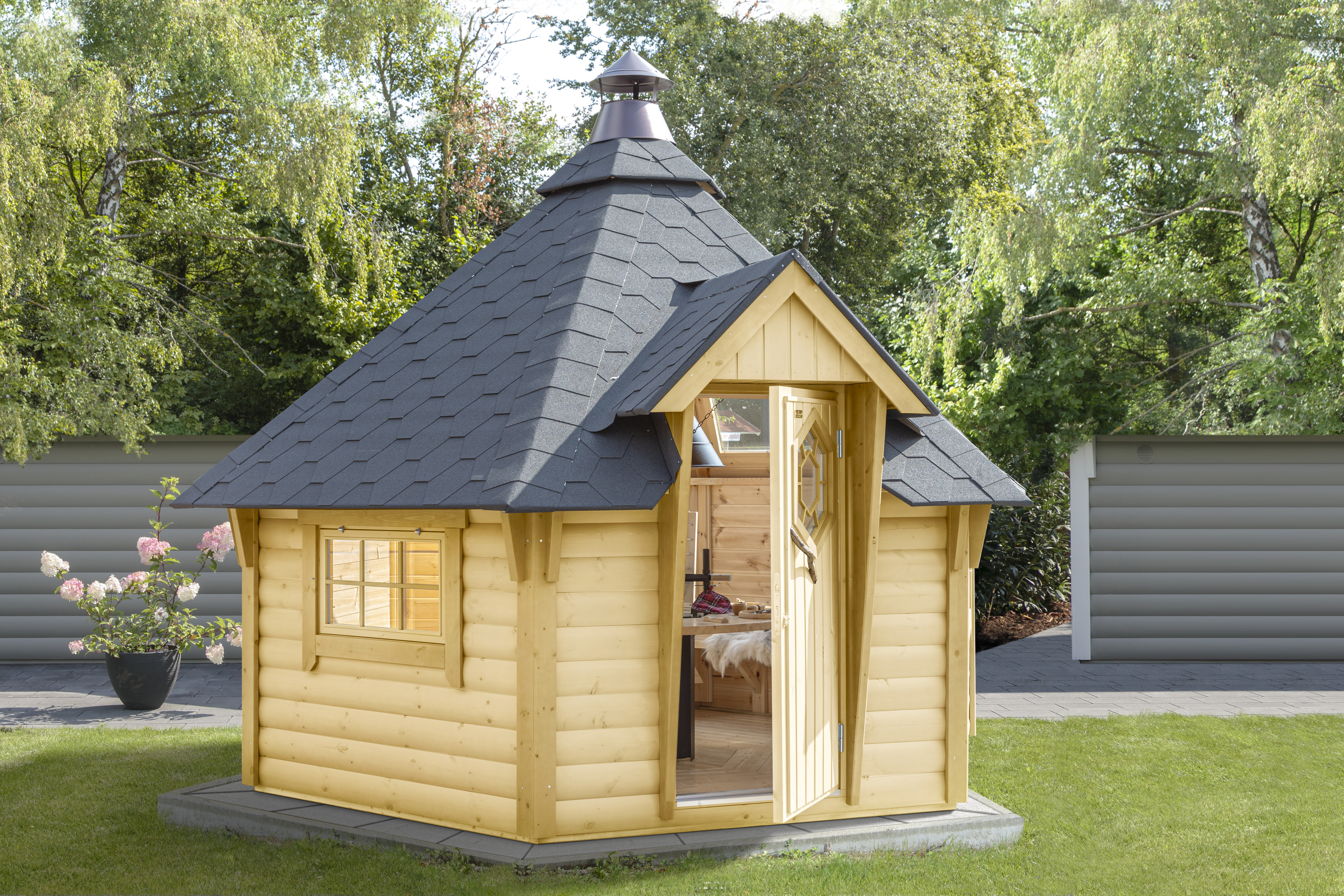 Erleben Sie echte Gemütlichkeit in einer Grillkota – mit zentralem Grill, gemütlichen Holzwänden und dem besonderen Flair nordischer Lebensart. Ob Sommerfest, Wintergrill oder Familienfeier: Diese Holzhütten bieten das ganze Jahr über einen warmen, geschützten Raum für unvergessliche Stunden.